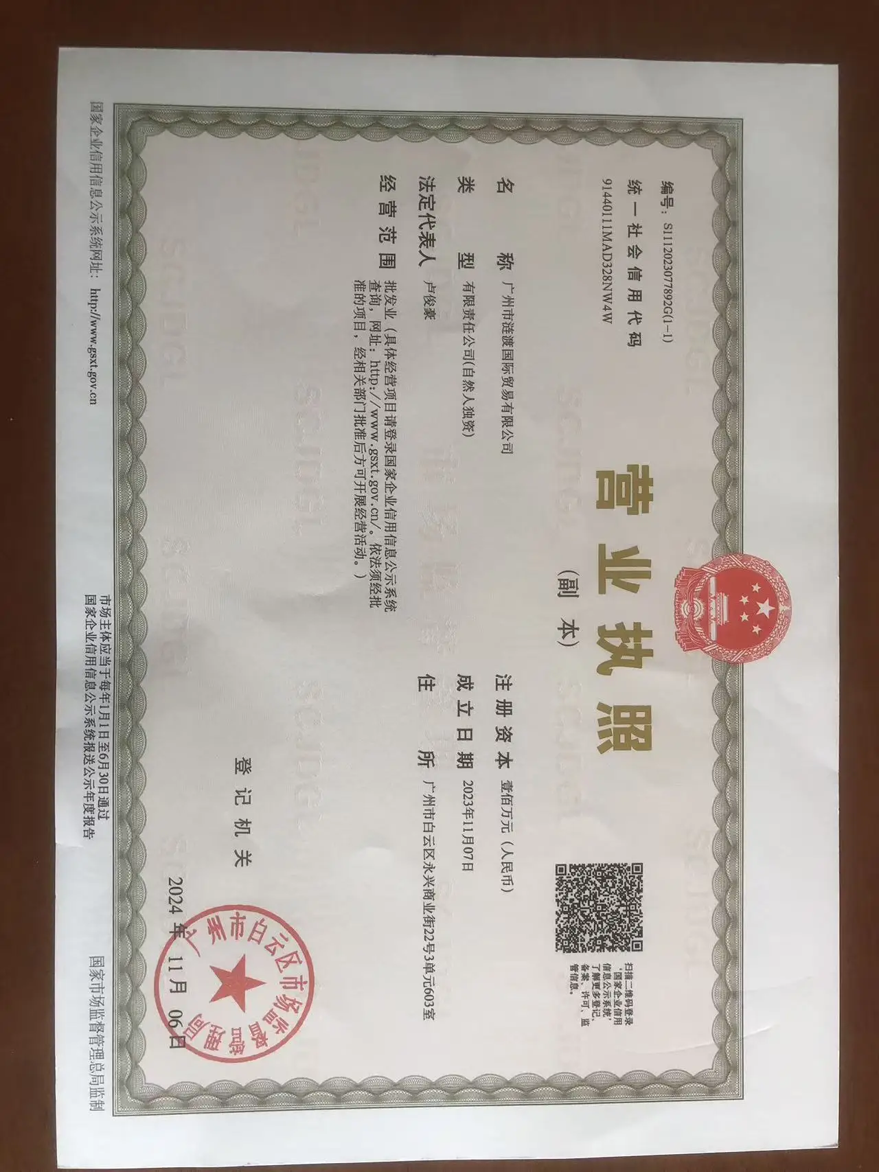 Registered address : Room 603, Unit 3, No. 22 Yongxing Commercial Street, Baiyun District Guangzhou Guangdong China